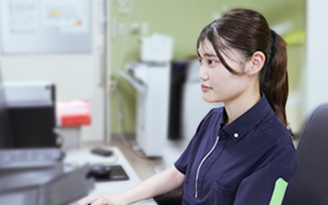 私は管理課の中でも入院担当をしており、入院患者さんのコスト(医療サービスを提供するためにかかる費用)を正しく整理していく中で、医療や診療報酬に関する知識が蓄積され、間違いのない請求ができたときにやりがいを感じます。また、医療費や様々な公費負担医療制度について詳しくなれる点にも魅力を感じます。患者さんが笑顔で退院される姿を見ると、業務の達成感とともに嬉しい気持ちになります。